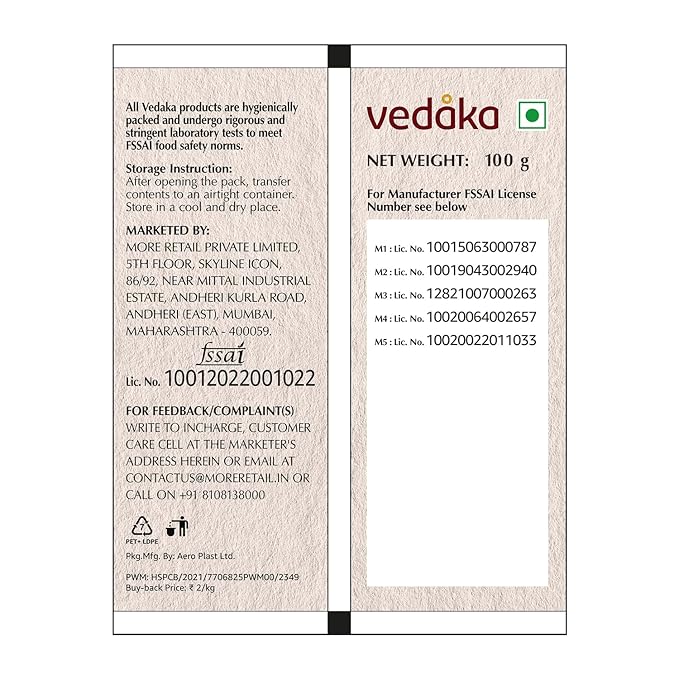 - All vedaka spices and seeds are hygienically packed and undergo stringent and rigorous laboratory tests to meet fssai food safety norms